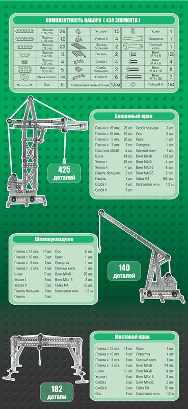 Конструктор металлический "Краны" (434 эл)