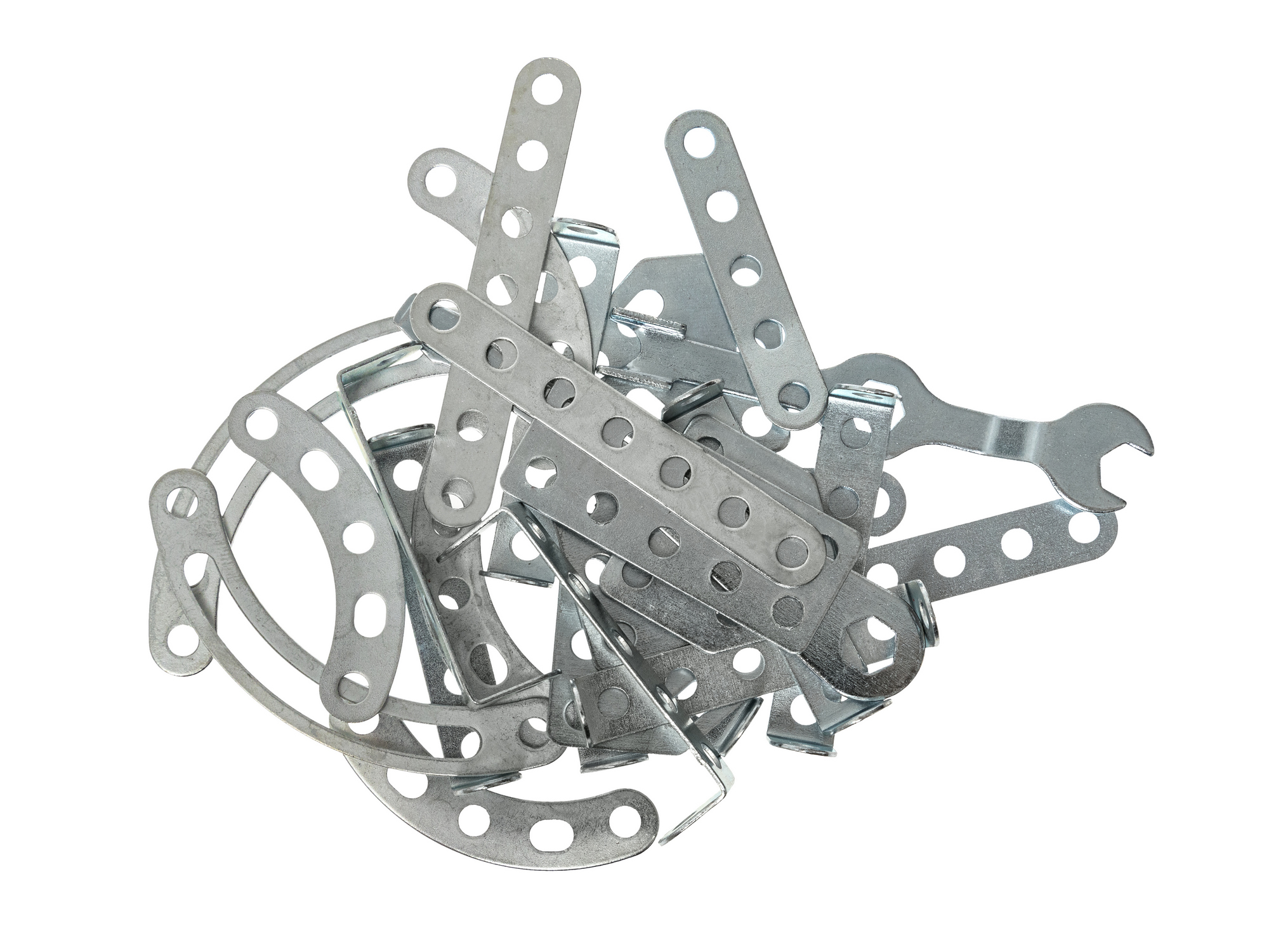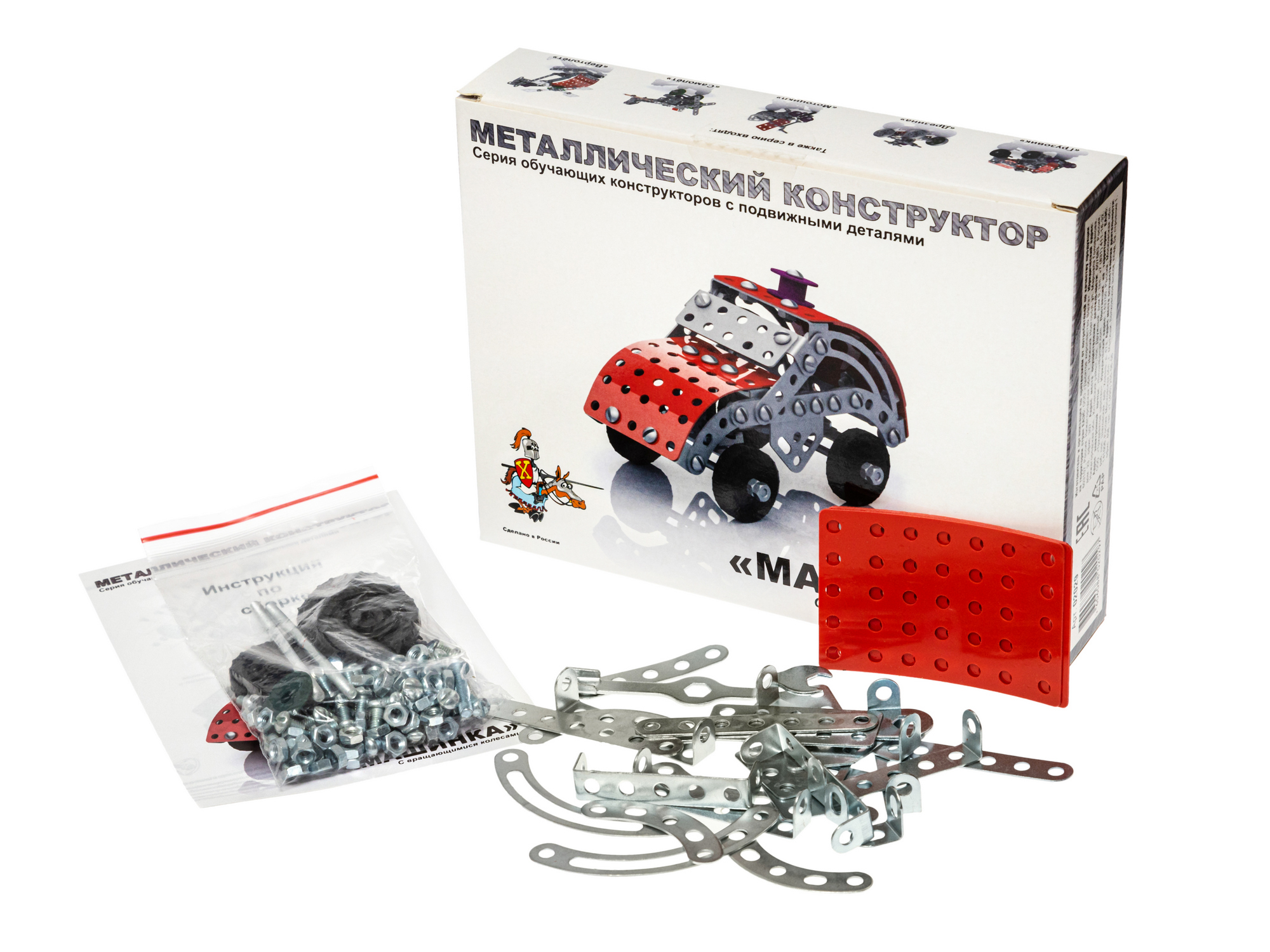 Набор идеально подходит для начинающих, благодаря простоте сборки модели и небольшому количеству деталей в комплекте. Состав набора: 132 детали, гаечный ключ, инструкция по сборке. Все детали серии имеют единый формат: размер варьируется от 2 до 15 см, толщина – 0,8 мм, расстояние между центрами отверстий – 10 мм. Крепёж имеет резьбу М4, длина болтов варьируется от 6 до 35 мм, а длина шпильки составляет 75 мм. Результат: модель машинки с движущимися колёсами. Занятия с металлическим конструктором активизируют развитие мелкой моторики рук, тренируют логику и пространственное мышление, а также закладывают основы знаний по конструированию и моделированию.