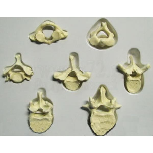 Модели изготовлены из пластмассы, раскрашена в цвет приближенный к естественному и представляют собой имитацию позвонков человека, что позволяет рассмотреть особенности строения позвонков разных отделов позвоночника, в зависимости от выполняемых ими функций.