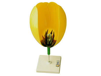 Модель демонстрирует строение цветка тюльпана. Модель разборная, снабжена пластмассовой подставкой. Детали модели изготовлены из пластмассы и окрашены в естественные цвета.