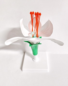 Модель изготовлена из пластмассы, раскрашена в цвета приближенные к естественным и представляет собой увеличенный цветок гороха. На модели можно рассмотреть: цветоложе, сросшиеся чашелистики, лепестки венчика, тычинки, столбик пестика. Изделие упаковано в коробку с маркировкой.