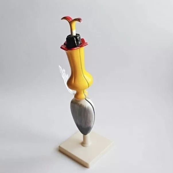Модель представляет собой увеличенный трубчатый цветок подсолнечника. Модель разборная, снабжена пластмассовой подставкой. Детали модели изготовлены из пластмассы и окрашены в естественные цвета. На модели можно рассмотреть: - нижнюю завязь; - трубку венчика; - зубцы отгиба; - редуцированную чашечку; - тычинки; - двулопастное рыльце пестика.