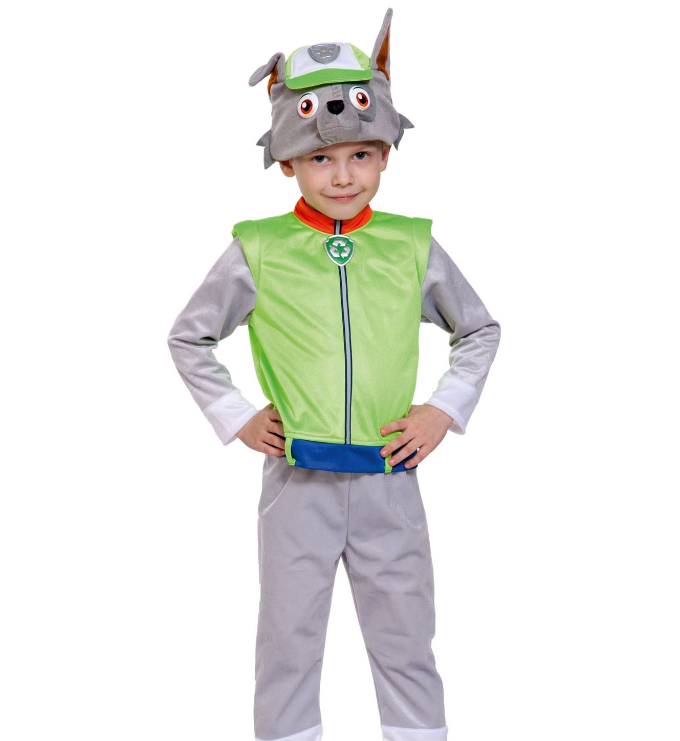 маска-шапочка из плюша и ткани, куртка-жилет из ткани с рукавами из плюша, плюшевые бриджи