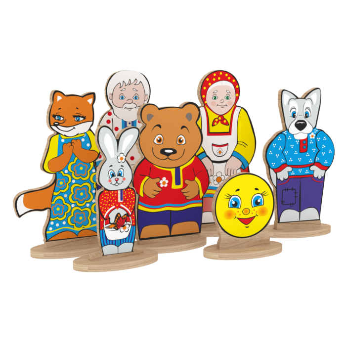 Набор «Персонажи сказки «КОЛОБОК» предназначен для индивидуальных и групповых занятий с детьми от 3-х лет, рекомендован для дошкольных образовательных учреждений и использования родителями в игровой и театрализованной деятельности.