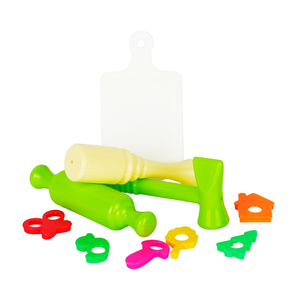 Комплектация: толкушка, скалка, молоток, доска разделочная,формочки 6шт.