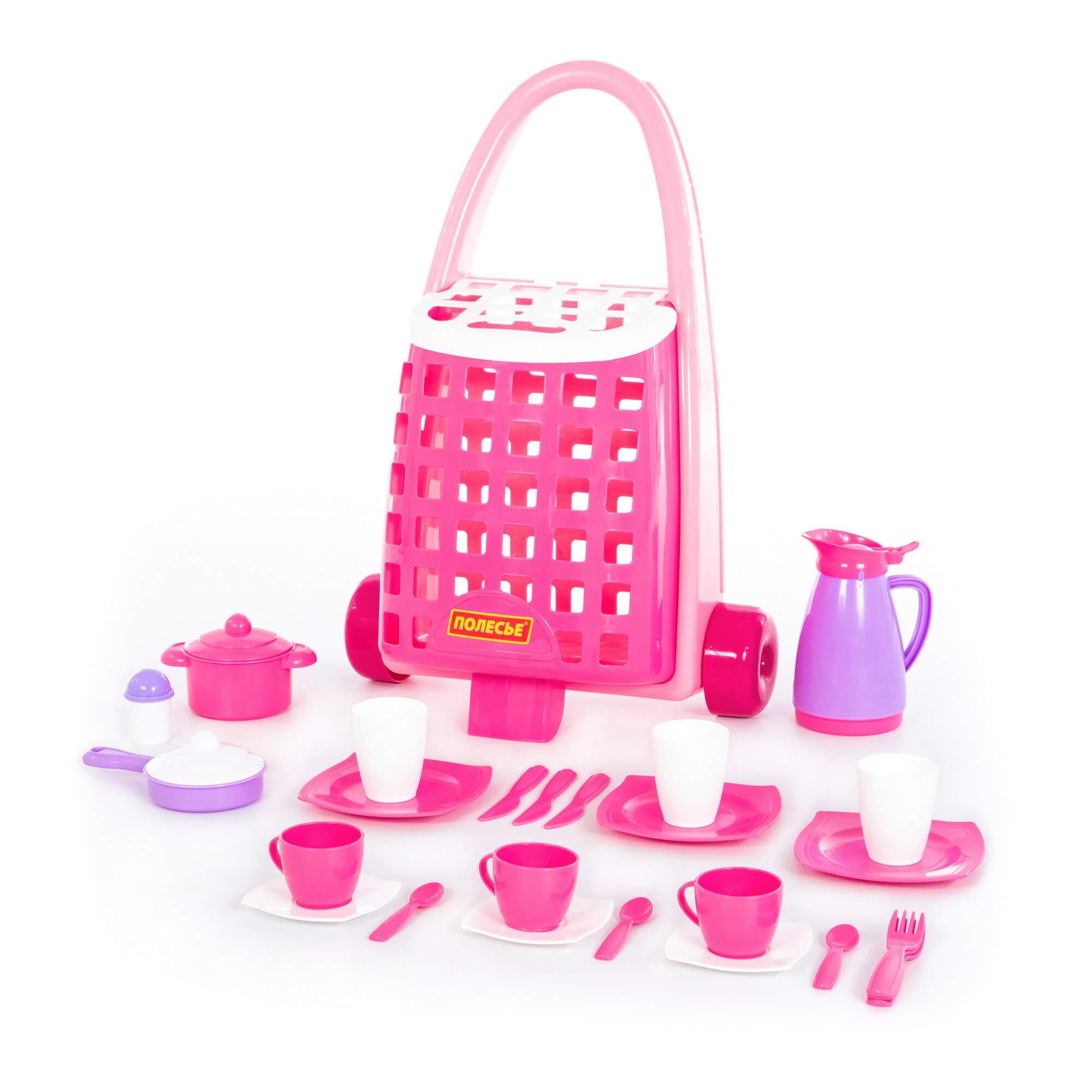 Забавная тележка + набор детской посуды 31 элемент