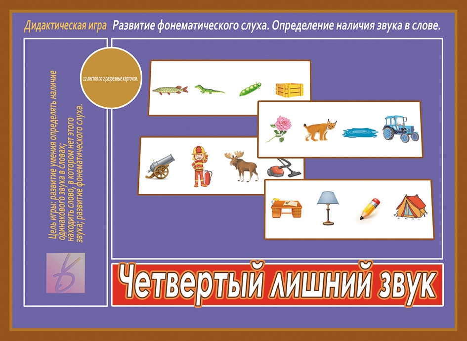 развитие умения определять наличие одинакового звука в словах; находить слово, в котором нет этого звука; развитие фонематического слуха.