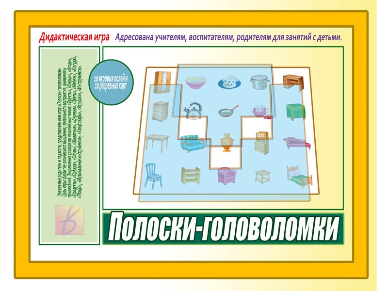 развитие логического мышления, зрительного восприятия; закрепление словаря по лексическим темам: «Фрукты», «Овощи», «Ягоды», «Продукты», «Одежда», «Обувь», «Животные», «Деревья», «Цветы», «Мебель», «Посуда», «Птицы», «Игрушки», «Школьные принадлежности», «Рабочие инструменты», «Музыкальные инструменты»