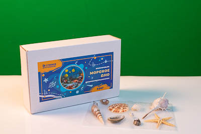 Коллекция включает биологические объекты, которые можно встретить на морском дне: морские звезды, раковины моллюсков. Объекты пронумерованы соответственно списку, смонтированы на листе пенополиуретана и упакованы в картонную коробку.