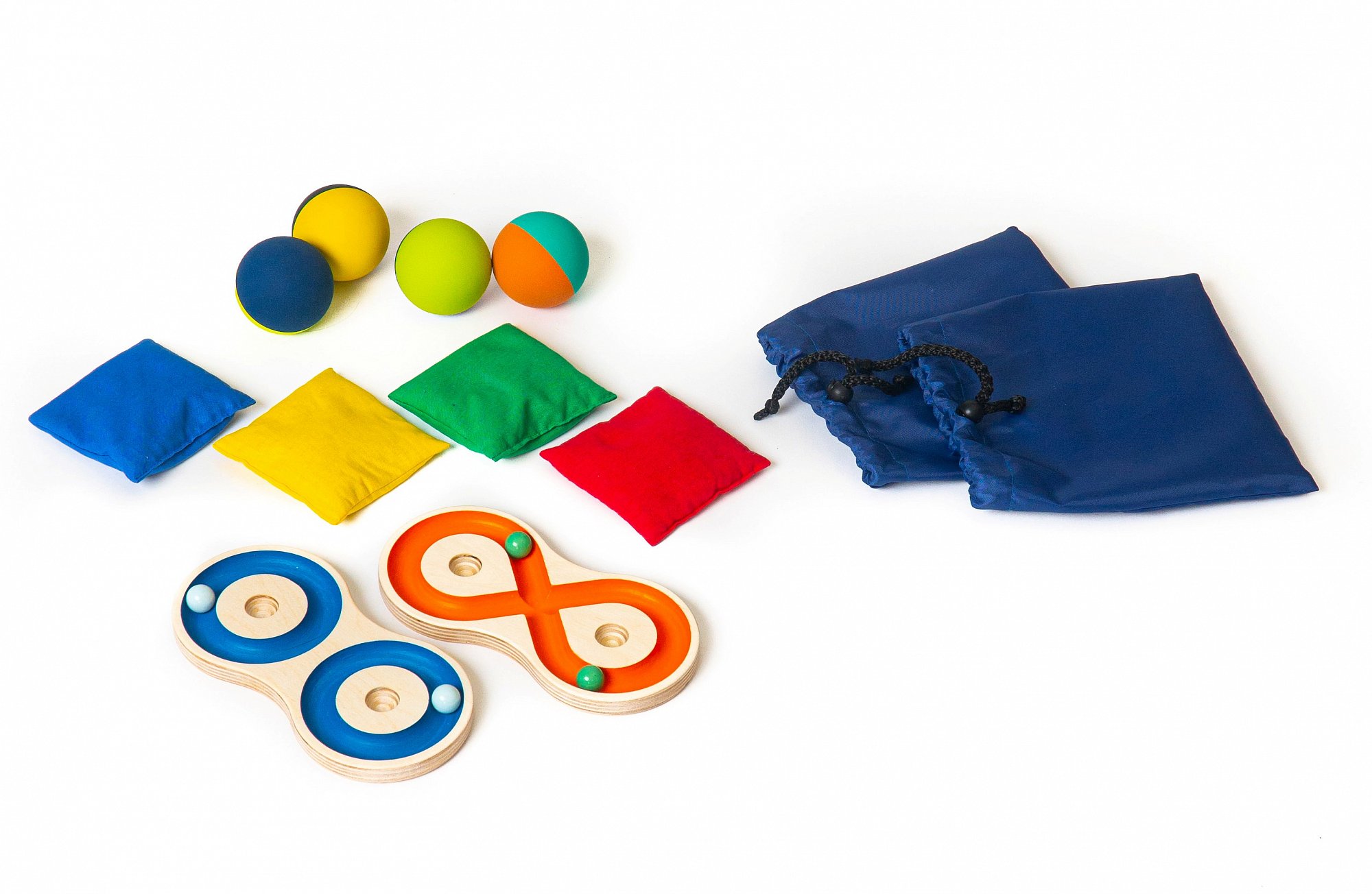 - 4 цветных кинезиологических мешочка с песком (красный, синий, желтый, зеленый)