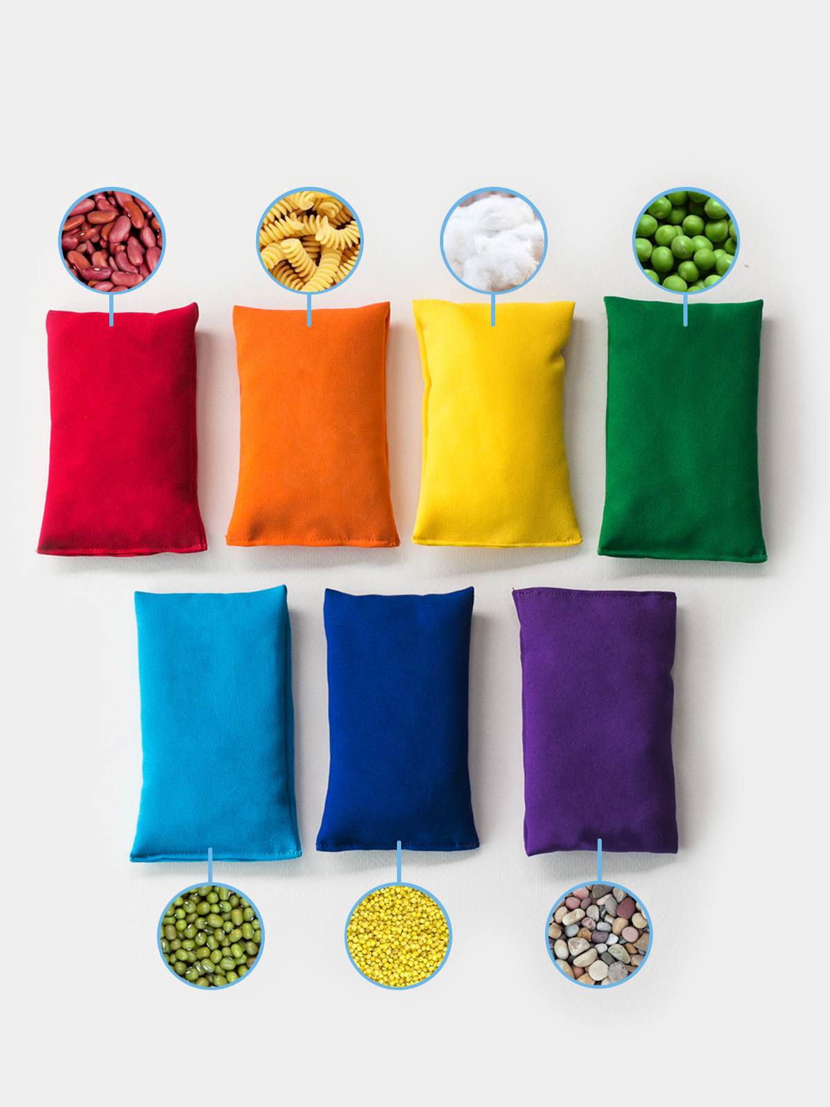 Тактильные мешочки подойдут в качестве пособия для занятий по методу Марии Монтессори. С ними есть множество интересных полезных игр, и вы можете придумать собственные.