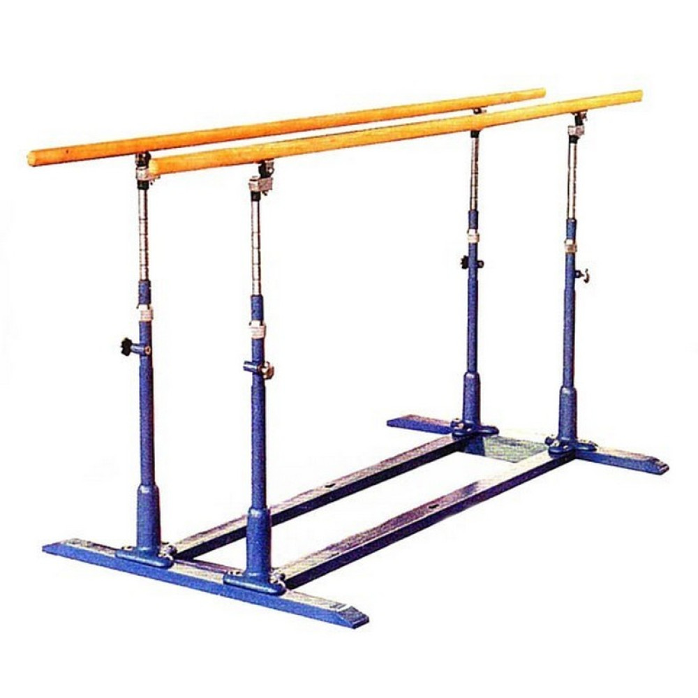 Представляют собой сборную конструкцию, состоящую из рамы, четырёх чугунных стоек с механизмами зажима и фиксации, четырёх вертлюгов и двух клееных деревянных жердей со стальным сердечником. Сечение жердей имеет специальную геометрию для надежного захвата их кистями рук при выполнении упражнений. Широкий диапазон регулировки высоты жердей от пола и расстояния между ними, жесткость и надежность конструкции брусьев, упругость и прочность жердей позволяют использовать брусья на тренировках и соревнованиях для разных возрастных категорий учащихся общеобразовательных и других учебных заведений. Подробнее