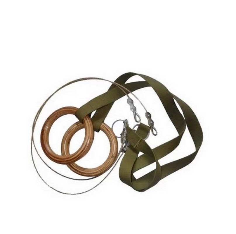 Кольца гимнастический предназначены для выполнения упражнений по спортивной гимнастике, состоят из: колец, прочной канатной стропы, троса и карабинов для крепления. В домашних условиях могут крепиться к потолку при помощи крюков, в спортивных залах желательно использовать настенную консоль для гимнастических колец. По желанию заказчика длина троса может быть увеличена или уменьшена. Подробнее