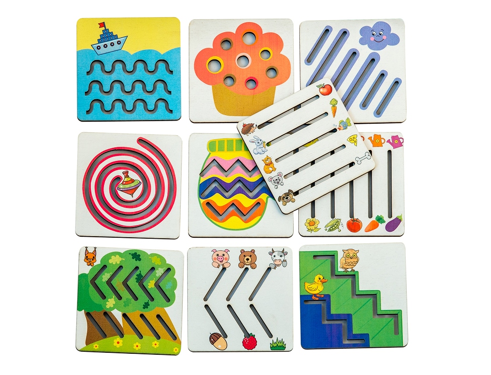 Игра для развития мелкой моторики и подготовки руки к письму. Рисовать различные линии - прямые, волнистые, замыкать их в круг, овал, для любого ребенка - настоящий труд. Данная игра учит ребенка контролировать движения руки и тренирует мышечную память. Чтобы малышу было интересно учиться - на линейках нанесены различные сюжеты. Водите карандашем или ручкой по линиям и помогайте: "Кораблику проплыть море", "Сове и утенку спуститься по лесенке", "Знакомым животным добраться до своей любимой еды" и т.д.