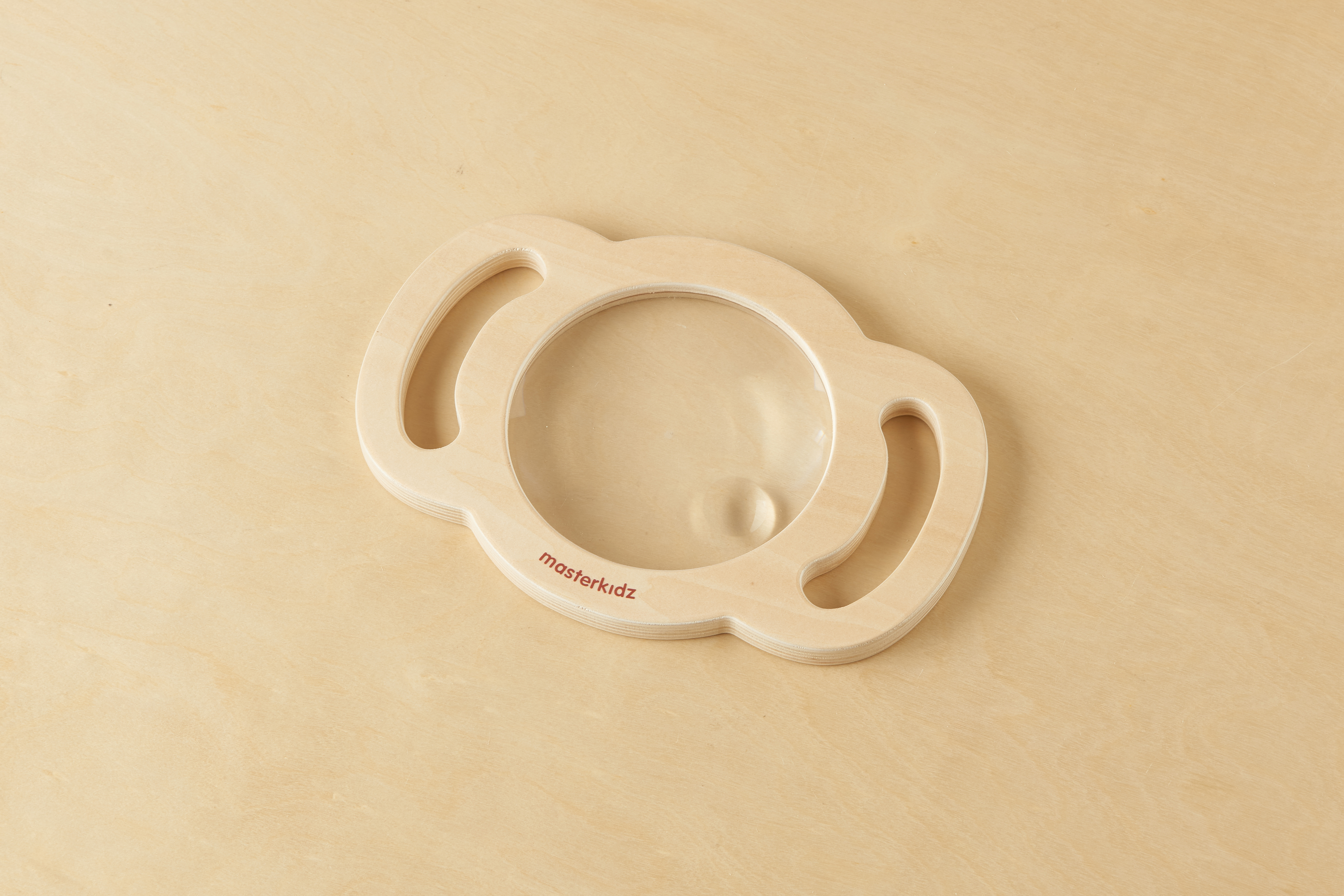 Лупа представлена в виде гигантской линзы с 3-х кратным увеличением диаметром 130мм и вставленной кнопочной линзой с 5-ти кратным увеличением. Для удобного использования снабжена прочными деревянными ручками, что позволяет детям держать объектив прямо над объектом и рассматривать мелкие детали.