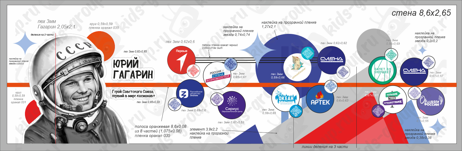 Стенд резной ПВХ 3 мм "Гагарин" 2,5х2,1 м