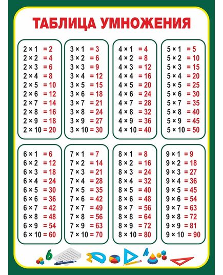 Стенд для школы ТАБЛИЦА УМНОЖЕНИЯ (Темно-зеленый)