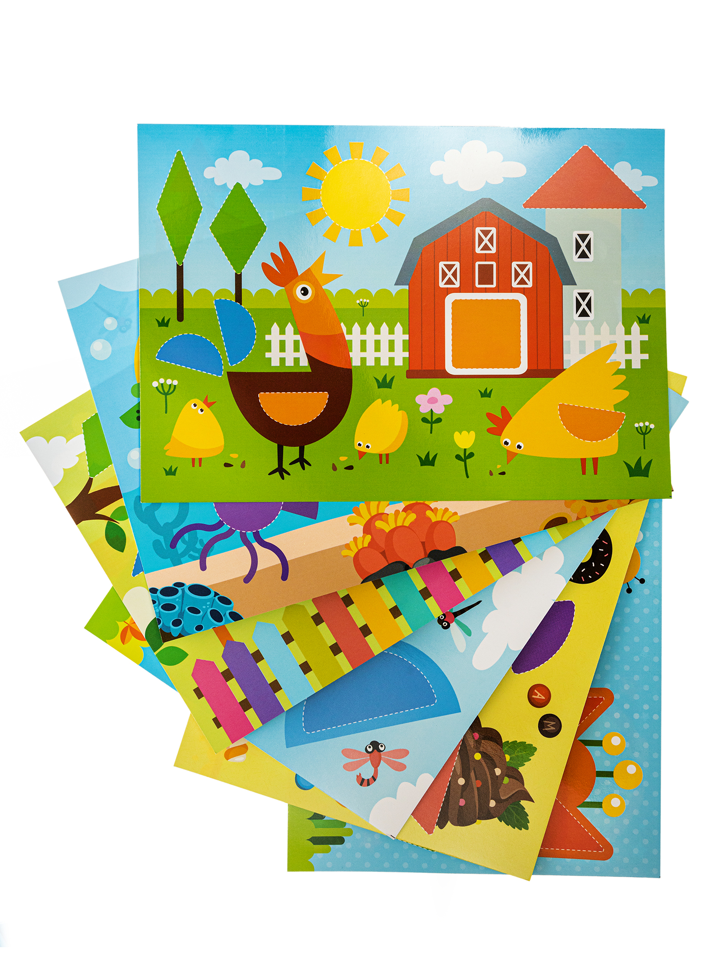 Развивающая деревянная игра Baby Toys WOOD 32 элемента. Состав: двусторонние карточки с заданиями – 6 шт. (21 х 15 см), деревянные окрашенные детали – 32 шт. (от 2,5 до 5,5 см – длина, 4 мм – толщина; цвета – жёлтый, красный, фиолетовый, синий, оранжевый, зелёный). Материалы: плотный ламинированный картон, берёзовая фанера, окрашенная в 6 цветов. Цель игры: дополнить карточки с заданиями недостающими фигурами с помощью деревянных деталей. Развивает логику, воображение, помогает выучить геометрические фигуры и основные цвета палитры.