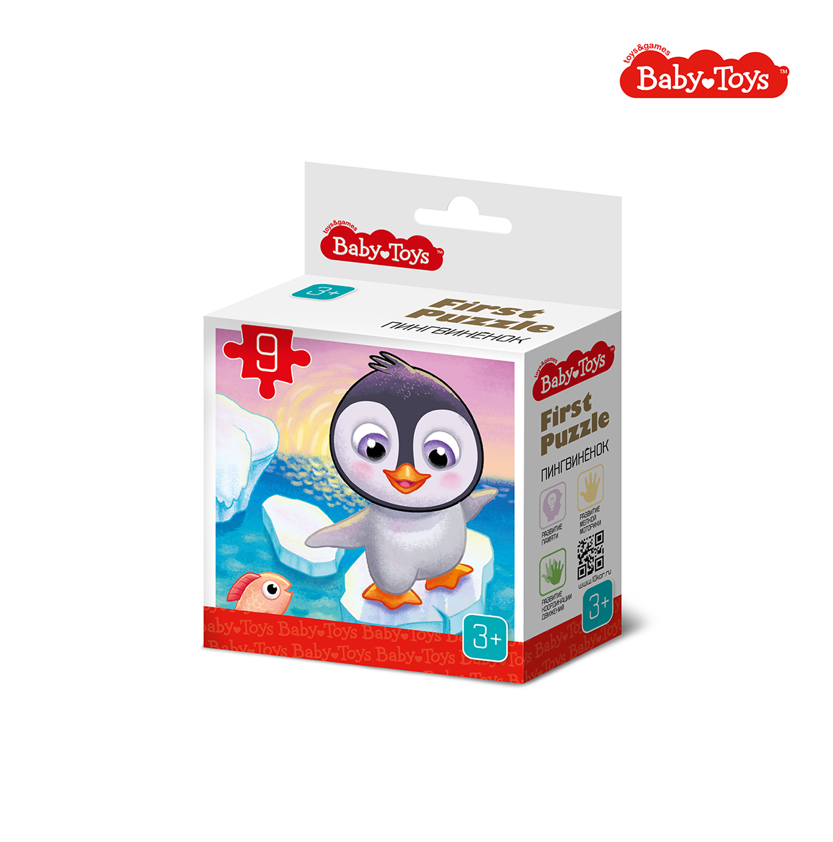 Пазл First Puzzle «Пингвинёнок» (серия Baby Toys). Состав: элементы пазлов – 9 шт. (7 х 10,5 см). Материал: ламинированный картон. Игра для детей от 3 лет. Размер картинки в собранном виде – 20 х 20 см. Пазл First Puzzle серии Baby Toys развивает память, координацию движения, мелкую моторику рук, щипковый захват, логическое мышление, усидчивость и воображение.