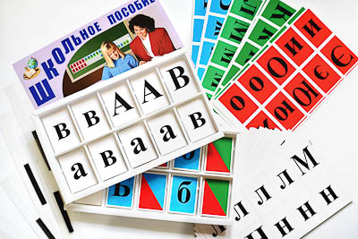 Пособие представляет собой ламинированные пленкой листы с напечатанными на них буквами, знаками и графическим изображением звуков и слияний. В комплекте представлены прописные и строчные печатные буквы.