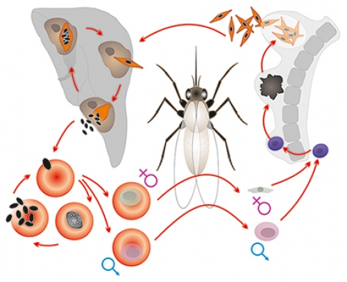 Пособие включает в себя 15 карточек (№ D1-D15), на которых изображены стадии цикла развития малярийного плазмодия.