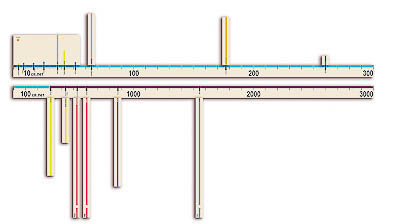 Изображения на карточках цветные, отпечатаны на магнитном виниле. Все шкалы имеют длину 1,5 м и деления через каждые 5 см. Три шкалы – линейные и имеют каждая свой масштаб расстояний (в одном делении 10, 100 и 10 000 св. лет соответственно). Две другие шкалы – логарифмические, одна в св. годах, другая – в км.