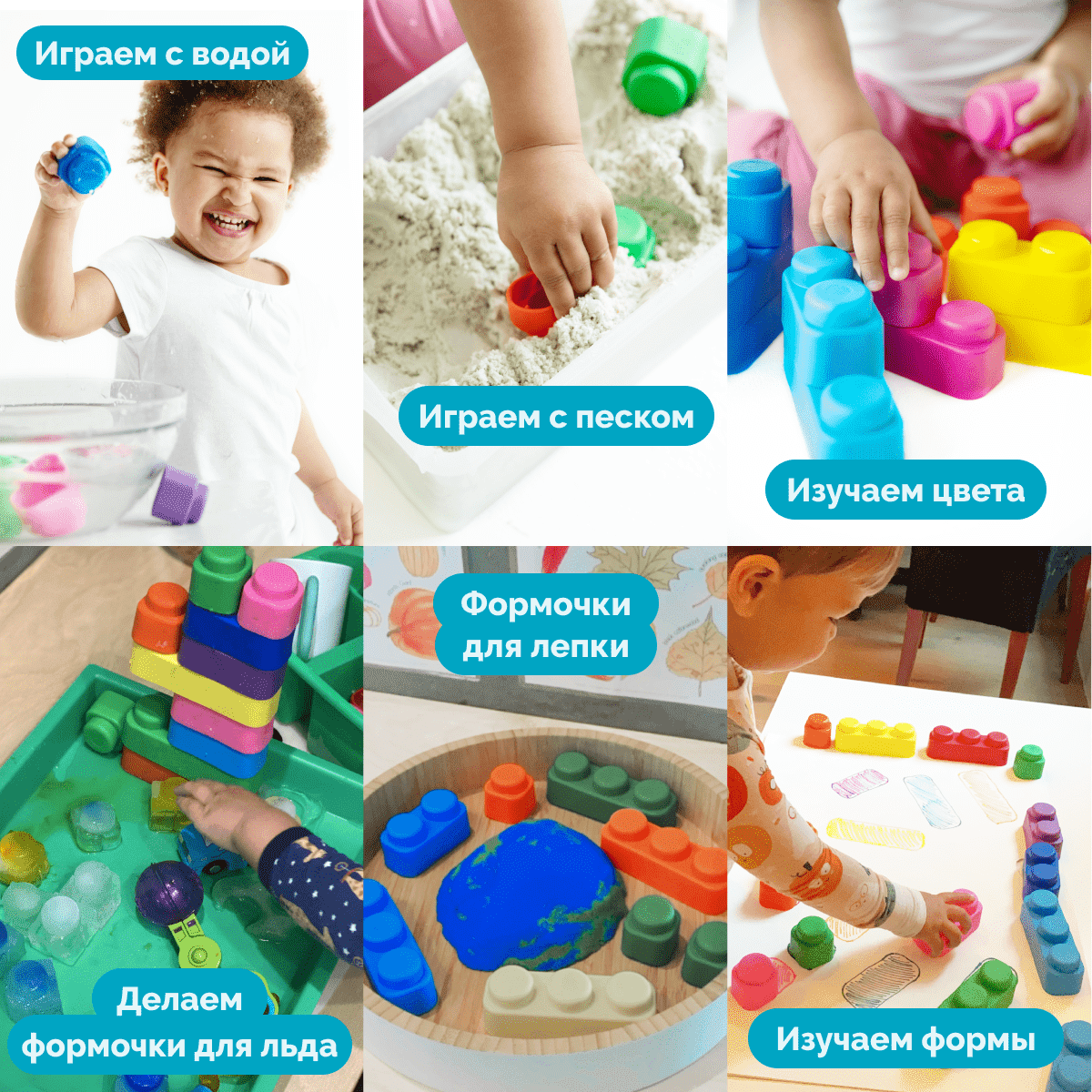 Конструктор для самых маленьких «Мягкие кирпичики», 14 деталей. Состав: одинарный элемент – 8 шт. (ДШВ: 5 х 5 х 5 см), двойной элемент – 4 шт. (ДШВ: 10 х 5 х 5 см), тройной элемент – 2 шт. (ДШВ: 15 х 5 х 5 см). Материал: мягкий пластик. Для детей от 3 месяцев. Развивает мелкую моторику, координацию, хватательные движения, фантазию и усидчивость, учит соединять и разъединять предметы, удерживать предмет в руке, а также различать цвета.