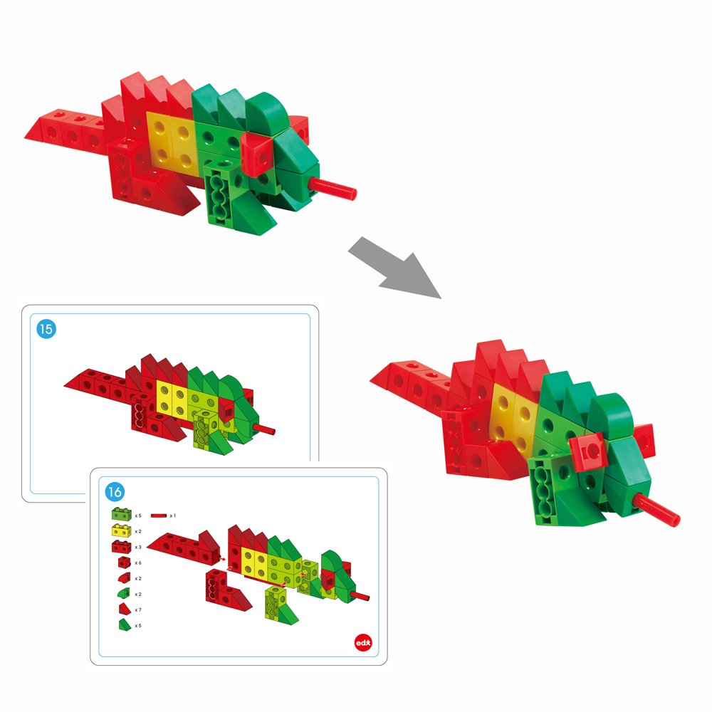 Конструирование – увлекательный и весьма познавательный вид детской игры, применяется для развития мелкой моторики, речи, математических способностей, творческих навыков, знакомит с основами геометрии. С помощью набора ребенок учится считать, сортировать, сравнивать, используя воображение или карточки с заданиями, строить различные фигуры животных.