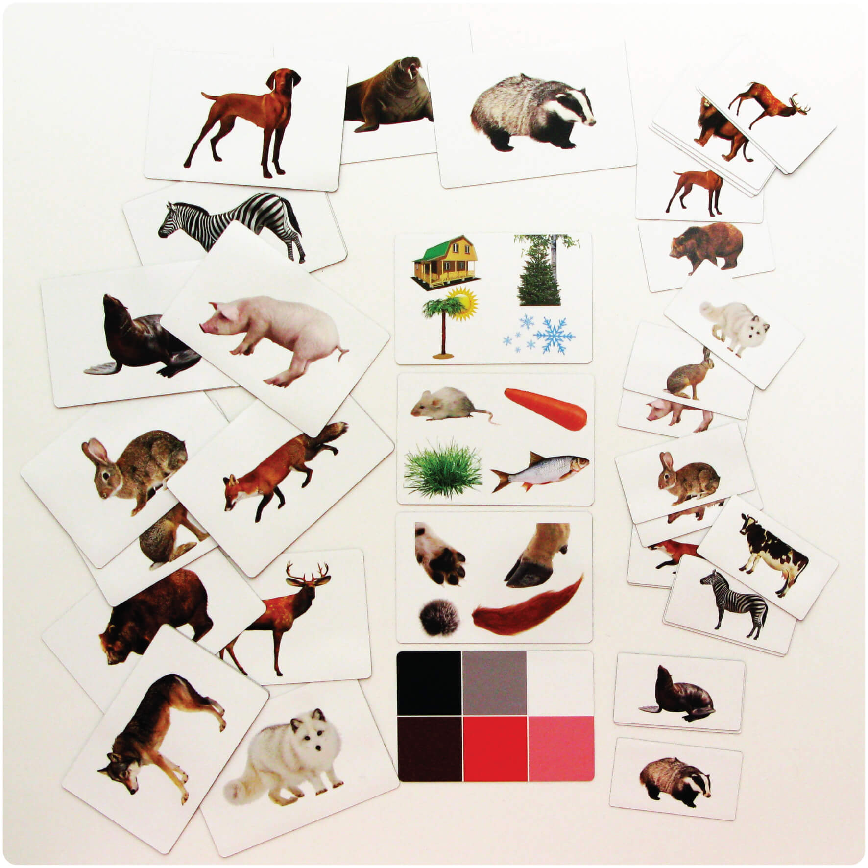 20 карточек с животными (5см х 9см): раздаточный материал;