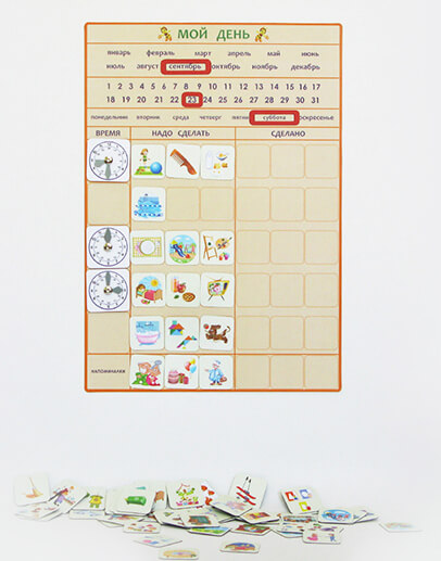 В комплекте 67 магнитных карточек размером 4 см х 4 см.