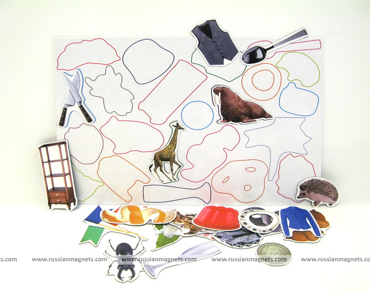 В комплекте Игровое поле; Инструкция с планом занятий; 25 магнитных карточек