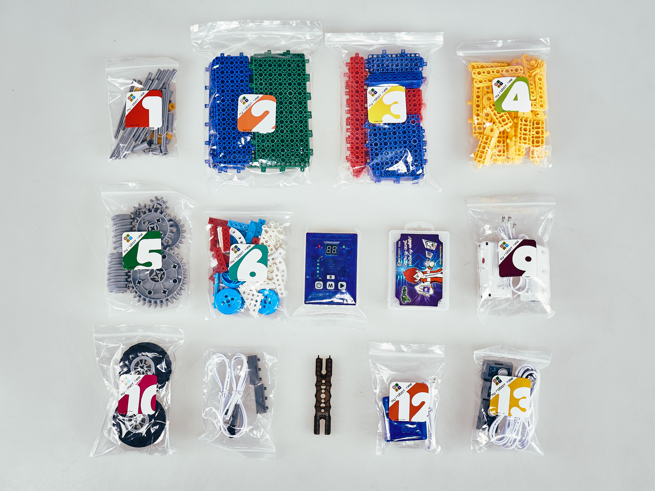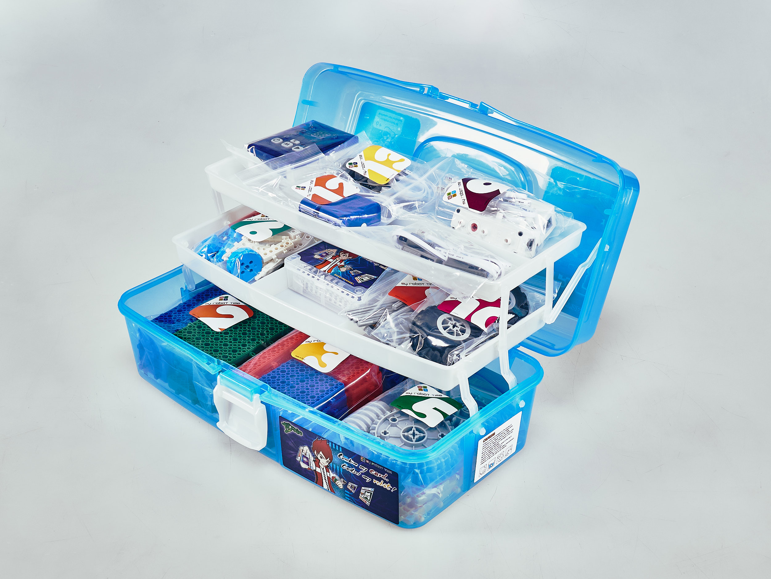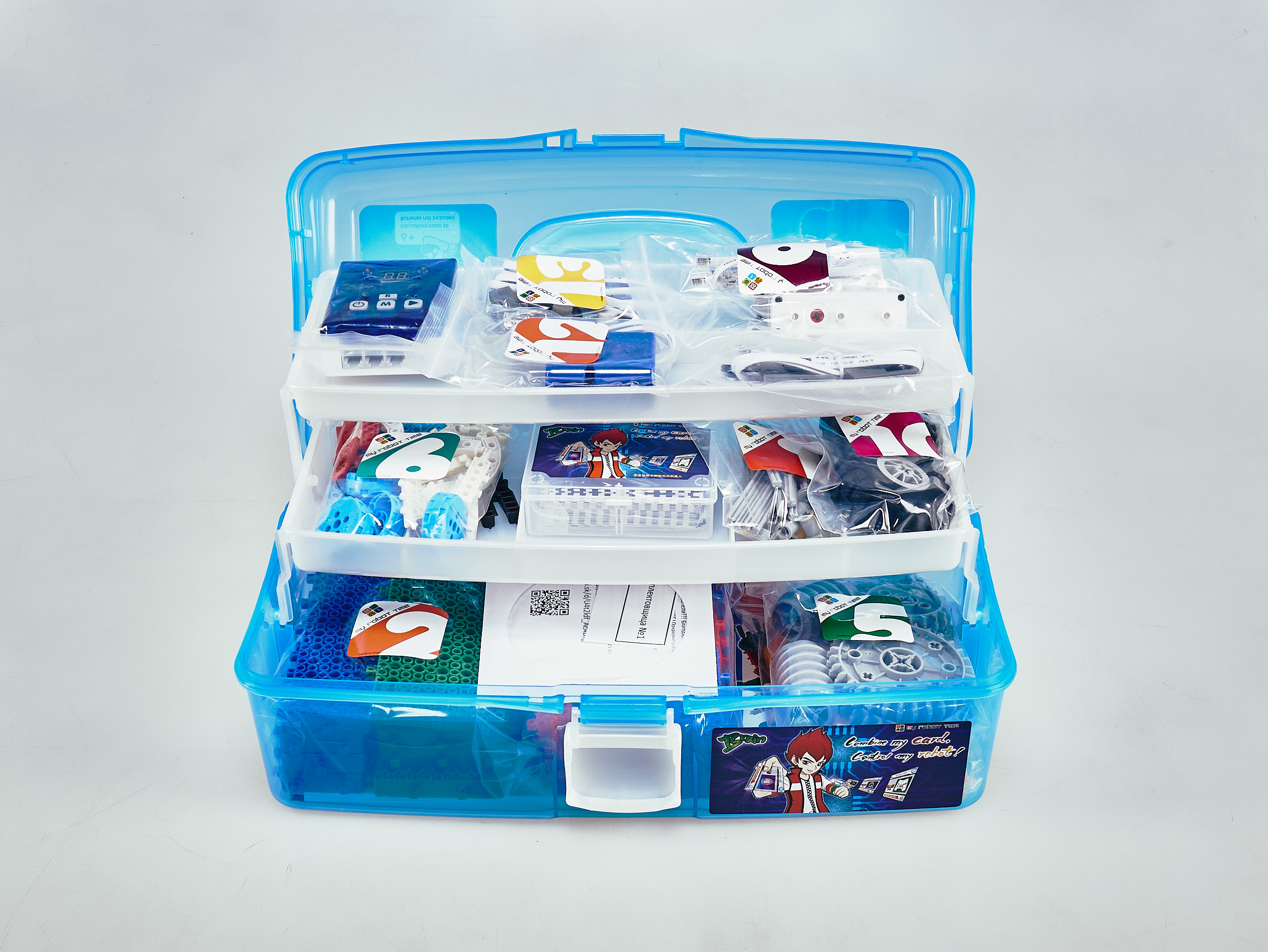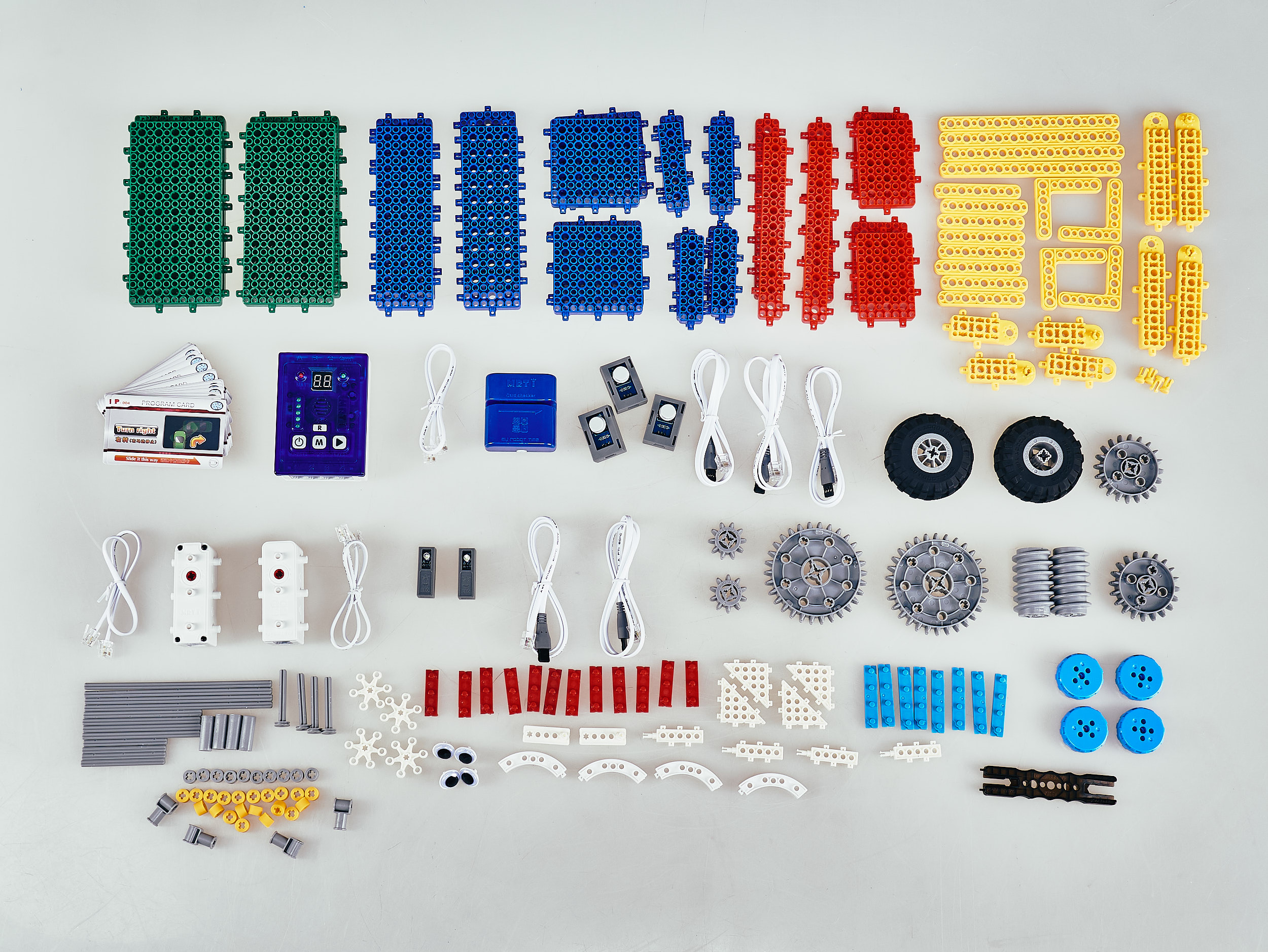 Набор состоит из не менее чем 180 деталей, и включает в себя крупные пластиковые блоки. Модели можно программировать с помощью специальных карточек.