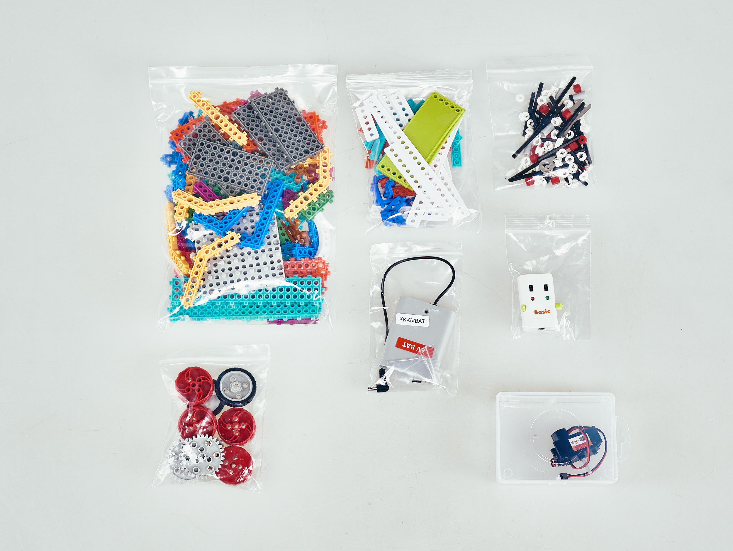 Наборы выполнены из яркого, привлекающего внимание детей, безопасного ABC-пластика. Они снабжены методическими пособиями, которые помимо подробных инструкций по сборке моделей, также содержат несколько увлекательных сказок, персонажей которых предлагается собрать детям и поиграть. Помимо этого, конструктор позволяет собирать неограниченное кол-во собственных моделей, придуманых ребёнком. Подробнее