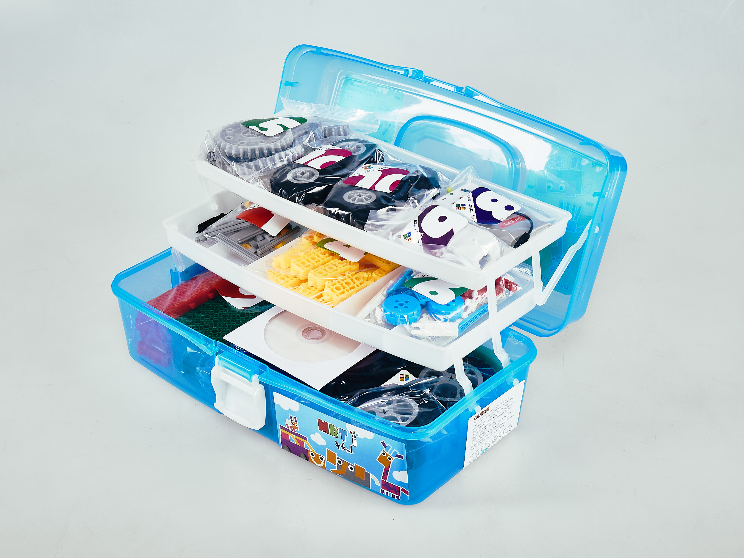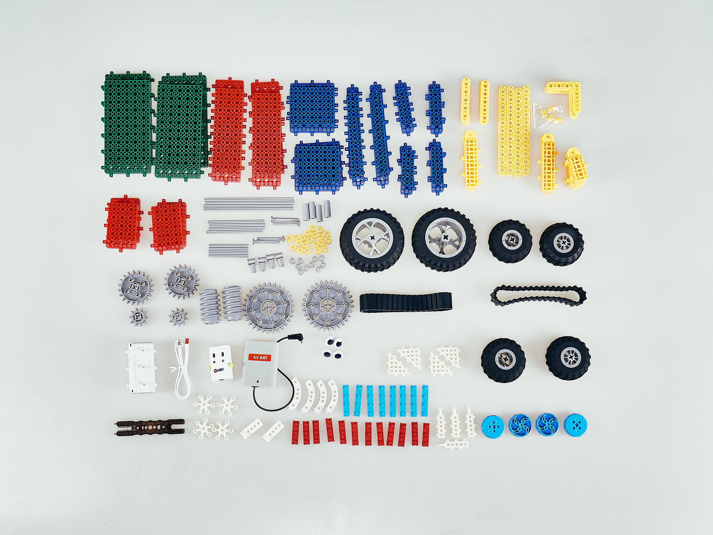Электронные компоненты набора представлены 1 большим DC двигателем в закрытом пластиковом корпусе с возможностью одновременно присоединить и вращать 3 оси.