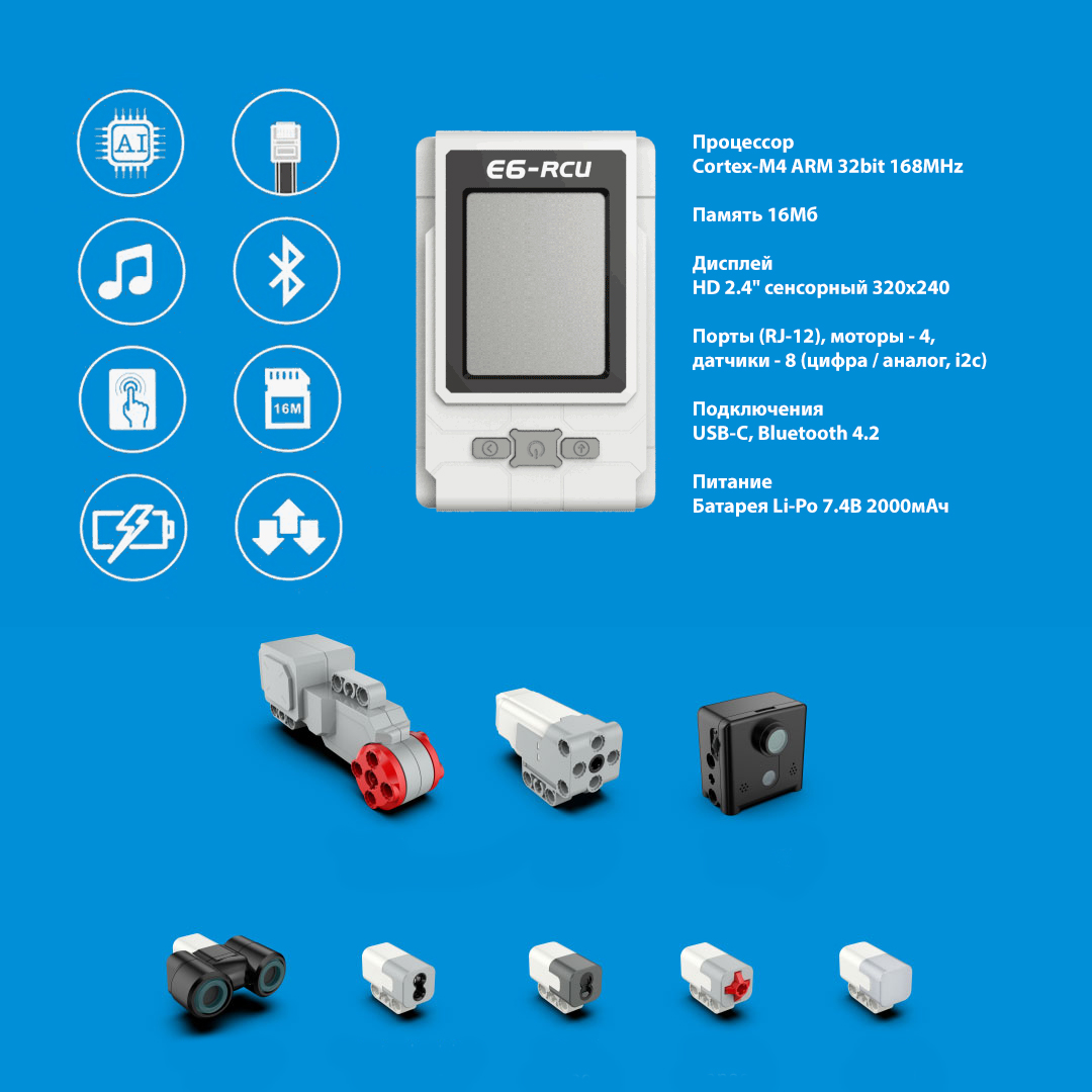 Набор Intelligence Storm представляет мощную обучающую платформу для искусственного интеллекта. Программирование возможно на модульном Scratch 3.0, блок-схемах в RoboExpress, а также на Python или C. Поддержка работы на апаратных платформах: ПК, планшеты, смартфоны.