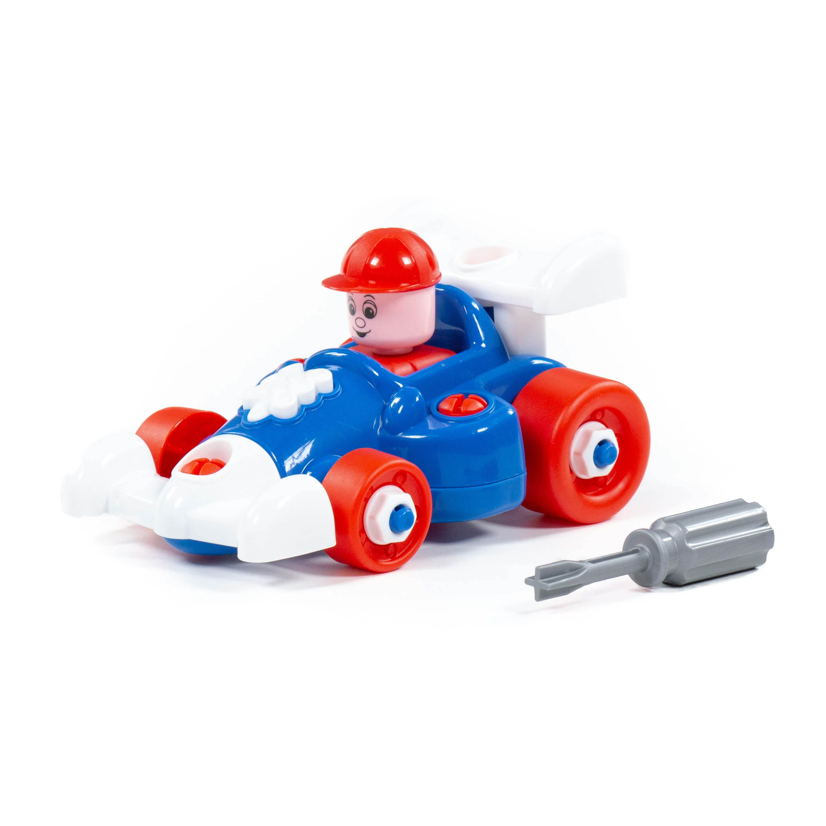 Конструктор серии Транспорт с отверткой в виде гоночного Автомобиля идеально подходит для занятий моделированием с детьми дошкольного возраста. Играя, юный механик старше 3 лет создаст модель спорткара, научится использовать игрушечный инструмент и проявит свои творческие способности.