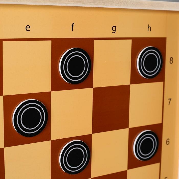 Шахматы и шашки демонстрационные магнитные. Состав игры: игровое поле – 1 шт. (игровое поле 61 х 61 см, клетка 7,6 х 7,6 см, общие параметры 73 х 73 х 3,5 см), набор шахмат (высота до 64 мм, ширина до 7 см), набор шашек (диаметр – 5,5 см, толщина – 4 мм). Материалы: полимерный материал, магнит, дерево. Для детей от 5 лет. Игра в шахматы и шашки развивает логическое мышление, пространственное воображение, память, внимание, концентрацию, самодисциплину и сообразительность.
