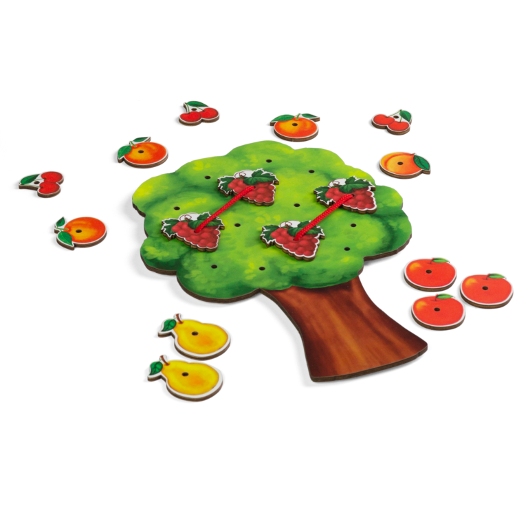 4. Можно решать математические задачки. На дереве росло пять груш. Одна груша упала, сколько груш осталось висеть на дереве?. Задачу сопровождайте игровыми действиями. Положите на дерево груши, а затем одну грушу положите вниз. Пусть ребенок сосчитает оставшиеся на дереве груши. Затем поработайте со шнуровкой.