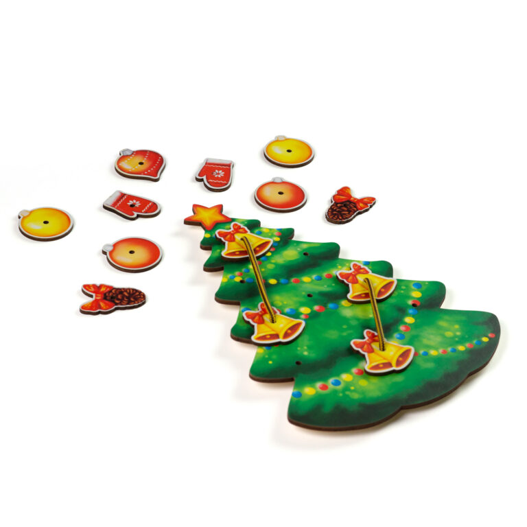 3. Можно решать математические задачки. На елочку Аня повесила пять шариков и два колокольчика. Сколько всего игрушек повесила Аня на елочку? Задачу сопровождайте игровыми действиями. Положите на елочку шарики и колокольчики. Пересчитайте их вместе с малышом. Затем поработайте со шнуровкой.