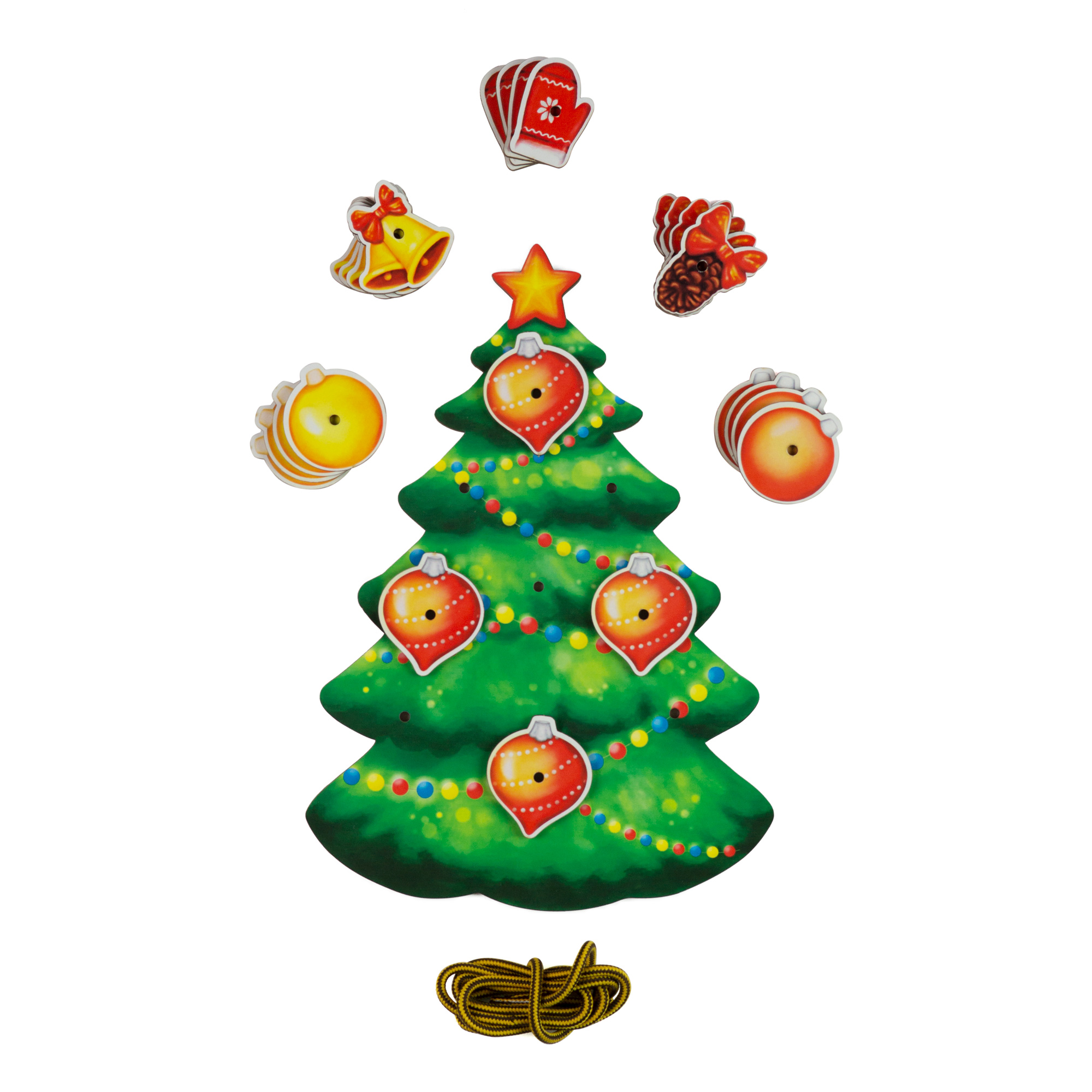 Деревянная панель в виде елочки с отверстиями для продевания шнурка – 1 шт.