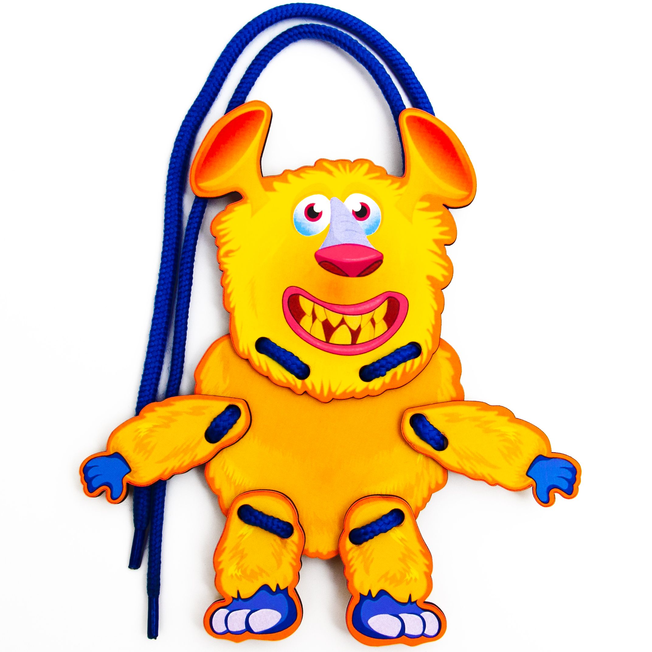 Предложите ребенку вообразить, что Жора - обжора стоит, сидит, лег спать, кушает, делает зарядку и т.д. Как при этом будет двигаться тело игрушки? Пусть ребенок покажет. Перешнуровывайте, если это необходимо, детали между собой.