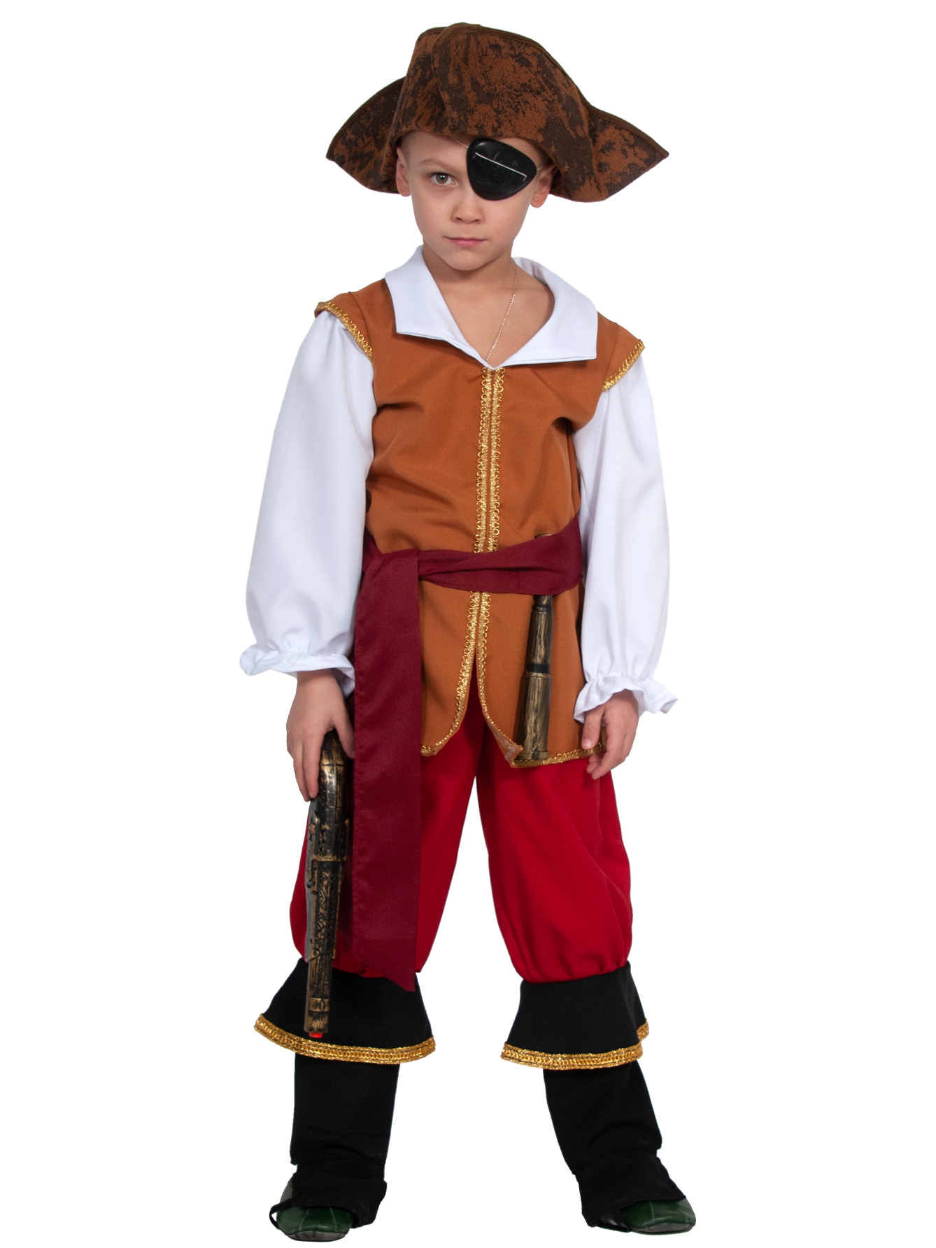 рубаха-камзол, штаны с ботфортами, треуголка, набор капитана (повязка на глаз, подзорная труба, мушкет)