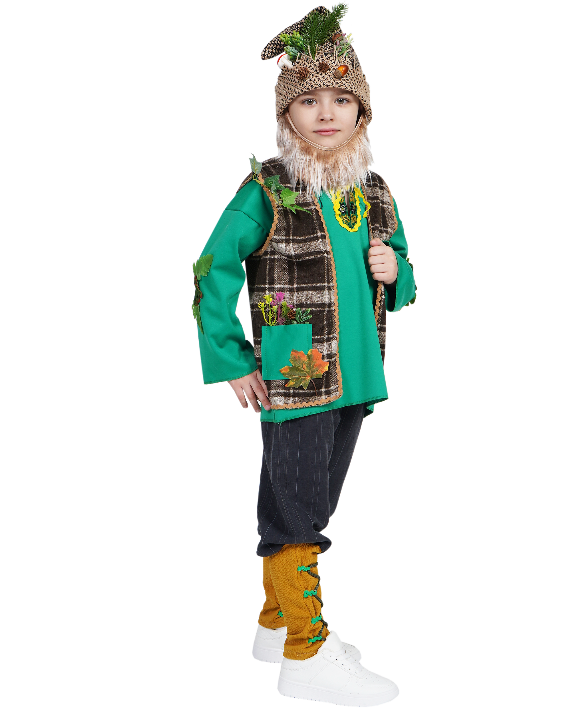 зелёный комплект: головной убор, борода, жилет, сорочка, брюки