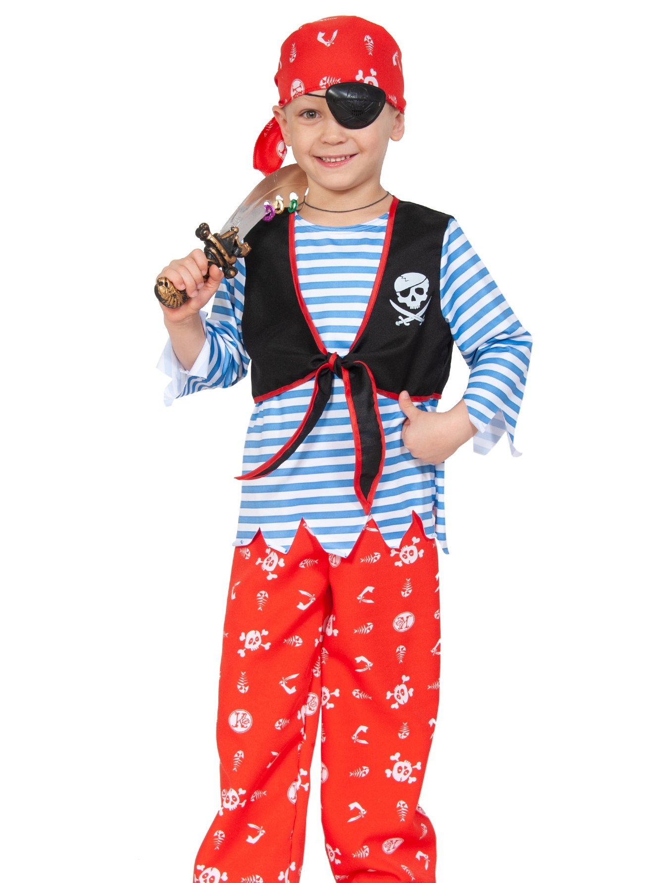 рубашка-тельняшка с жилетом, шаровары, бандана, повязка на глаз, сабля