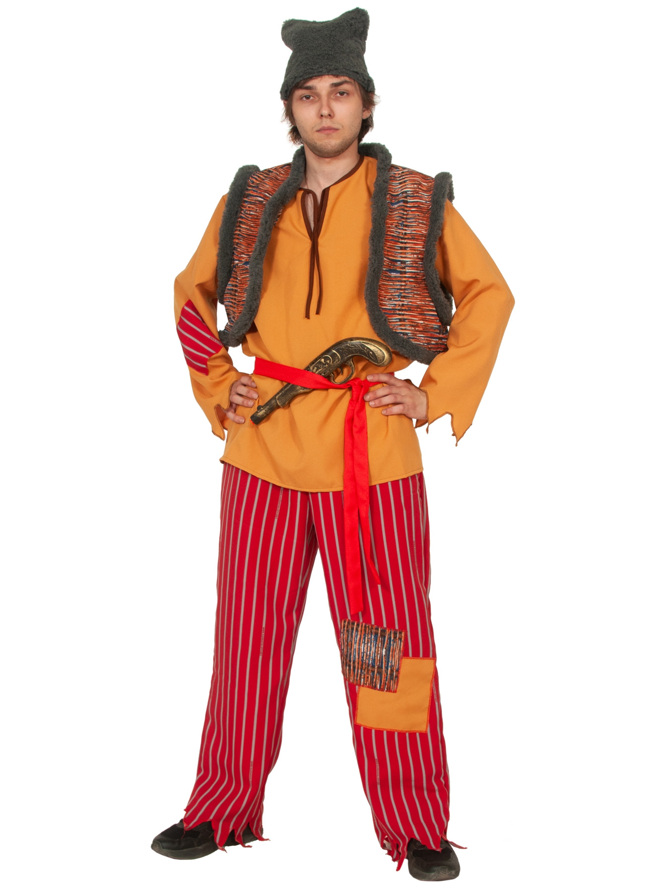 папаха, рубаха, штаны, жилет, мушкет