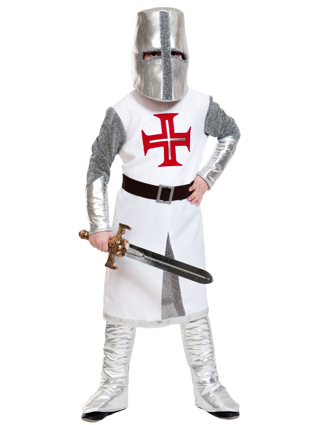 шапка-шлем, туника с крестом и рукавами, пояс, сапоги-иммитация, меч