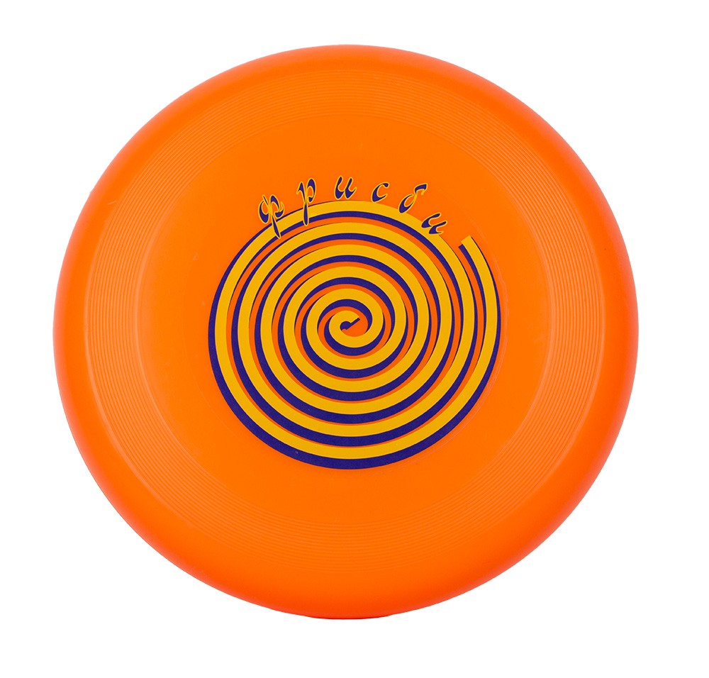 Фрисби изготовлена из высококачественной пластмассы. Это игровой снаряд, который запускают и ловят, представляет собой диск из пластика диаметром 26 см с загнутыми краями, внешне напоминающий тарелку. Он обладает замечательной аэродинамикой и отлично летает, а в воздухе его удерживает подъемная сила. Диск можно запускать под разными углами — он полетит одинаково хорошо. Игра способствуют развитию физической формы, развивает скорость реакции, ловкость, координацию.