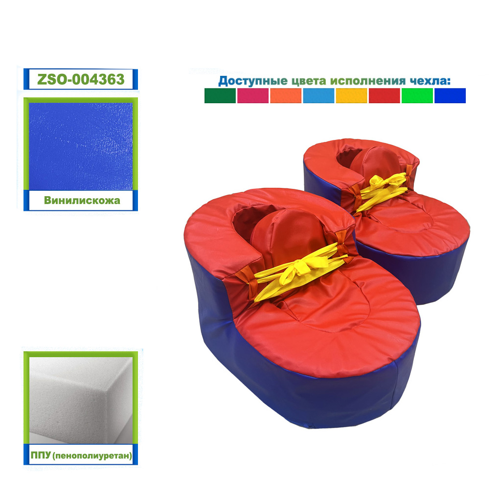 Гига кеды эстафетные представляет собой пару мягких изделий, состоящих из чехлов сшитых из винилискожи, плотного основания из НПЭ и наполнителя боков и язычка - прочного ППУ - пенополиуретана плотностью 19,3 кг/м3. У модулей имеется молния со скрытыми замками для замены наполнителя. Поставляется в собранном виде. Подробнее