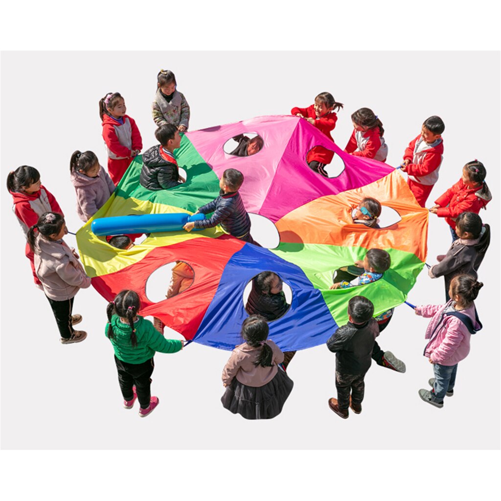 В наборе парашют 8 секций с отверстиями и мягкая палка.