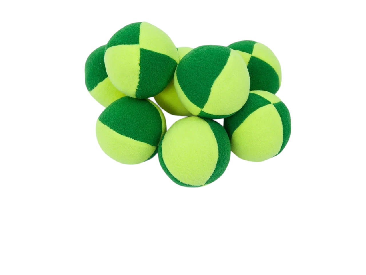 Комплектация: 4 детали сшитых между собой (2 цвета - желтый, зеленый). Наполнен мячик синтепухом.